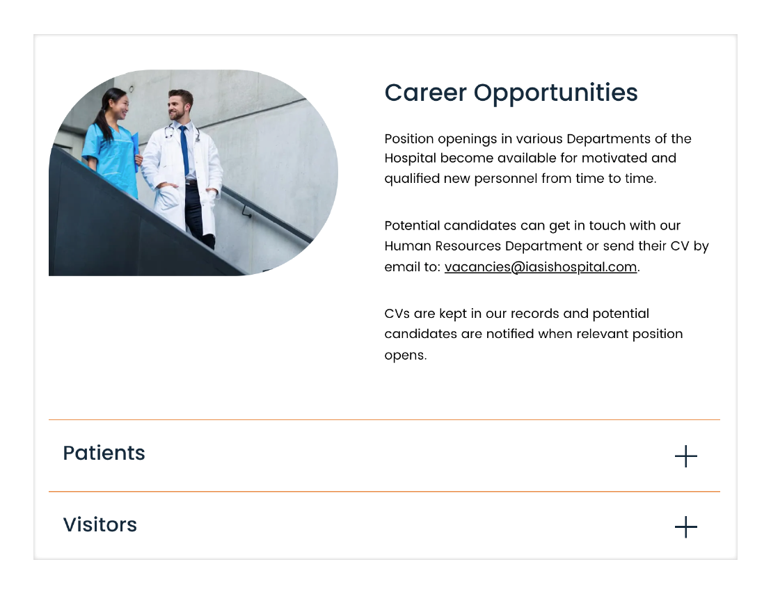 To further improve the user experience, we introduced a cleaner layout and added clear icons and visual elements that make the content easier to understand at a glance. The result is a modern, user-friendly website that better represents IASIS Private Hospital and makes online navigation simple and efficient for patients and visitors.